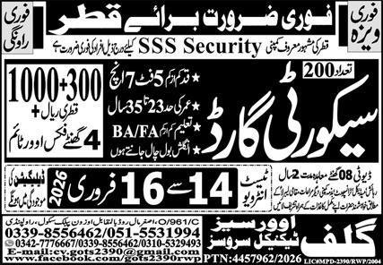 Security Guards Jobs Open In Qatar 2026 announce the Contract career opportunities for the post of See Below Ad in Qatar for the fresh and experienced candidates on Contract basis who have Check Advertisement degree. Posted date of this post is 13/02/2026 and the last date is 16/02/2026. if you are eligible for this job apply before due date.