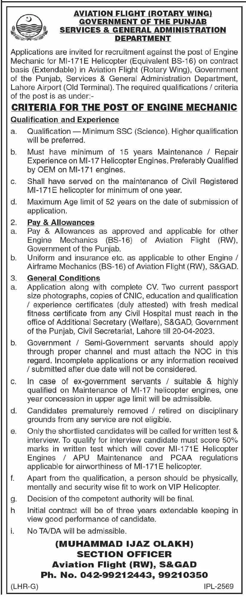 Service & General Adminstration Department Jobs 2023 announce the Contract career opportunities for the post of See Below Ad in Punjab, Lahore for the fresh and experienced candidates on Contract basis who have Check Advertisement degree. Posted date of this post is 07/04/2023 and the last date is 20/04/2023. if you are eligible for this job apply before due date.