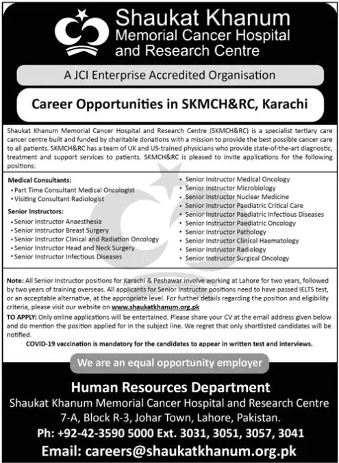 - Read complete ad online to know how to apply on latest Shaukat Khanum Memorial Cancer Hospital & Research Centre job opportunities
