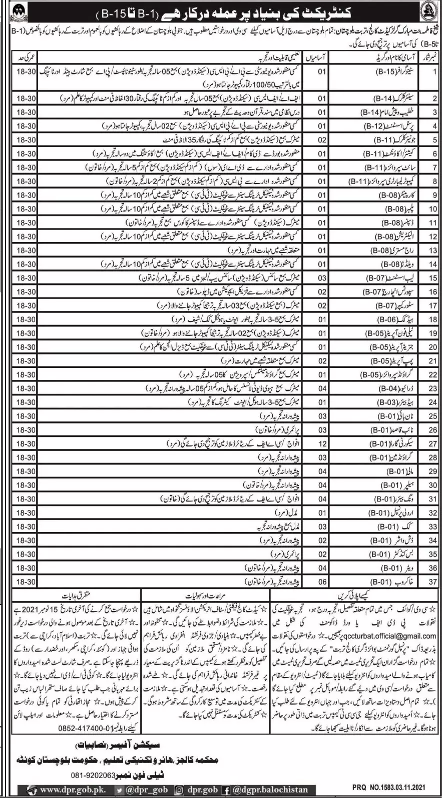 Sheikh Fatima Girls Cadet College Turbat Jobs 2021 announce the Permanent career opportunities for the post of See Below Ad in Balochistan,Quetta,Turbat for the fresh and experienced candidates on Permanent basis who have Check Advertisement degree. Posted date of this post is 05/11/2021 and the last date is 15/11/2021. if you are eligible for this job apply before due date.