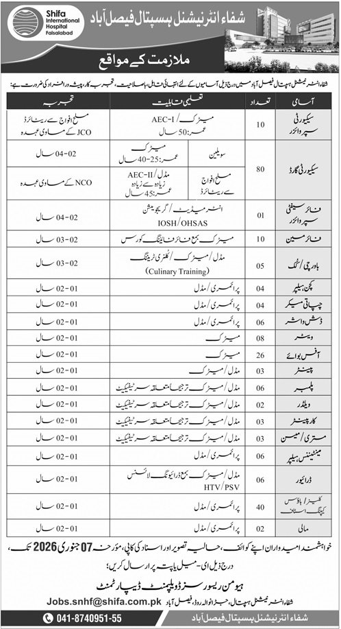 Shifa International Hospital Faislabad Jobs announce the Contract career opportunities for the post of See Below Ad in Punjab, Faisalabad for the fresh and experienced candidates on Contract basis who have Check Advertisement degree. Posted date of this post is 28/12/2025 and the last date is 07/01/2026. if you are eligible for this job apply before due date.