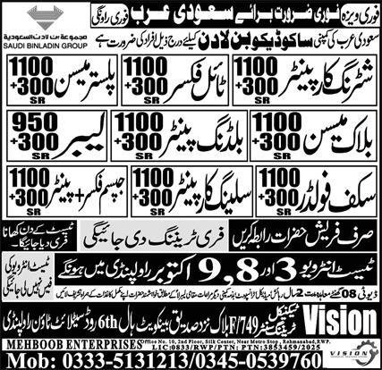 Shuttering Carpenter And Block Mason Jobs In Saudi Arabia announce the Contract career opportunities for the post of See Below Ad in Saudi Arabia for the fresh and experienced candidates on Contract basis who have Check Advertisement degree. Posted date of this post is 21/09/2025 and the last date is 09/10/2025. if you are eligible for this job apply before due date.