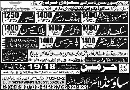Shuttering Carpenter & Building Painter Jobs 2026 announce the Contract career opportunities for the post of See Below Ad in Saudi Arabia for the fresh and experienced candidates on Contract basis who have Check Advertisement degree. Posted date of this post is 17/04/2026 and the last date is 19/04/2026. if you are eligible for this job apply before due date.
