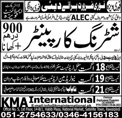 Shuttering Carpenter Jobs In Dubai 2023 announce the Contract career opportunities for the post of See Below Ad in Dubai for the fresh and experienced candidates on Contract basis who have Check Advertisement degree. Posted date of this post is 16/08/2023 and the last date is 21/08/2023. if you are eligible for this job apply before due date.