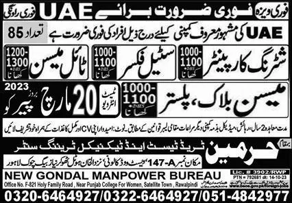 Shuttering Carpenter & Mason Jobs in UAE 2023 announce the Contract career opportunities for the post of See Below Ad in United Arab Emirates for the fresh and experienced candidates on Contract basis who have Check Advertisement degree. Posted date of this post is 16/03/2023 and the last date is 20/03/2023. if you are eligible for this job apply before due date.