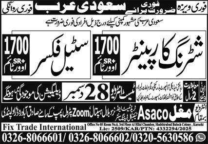 Shuttering Carpenter & Steel Fixer Jobs 2026 In Saudi Arabia announce the Contract career opportunities for the post of See Below Ad in Saudi Arabia for the fresh and experienced candidates on Contract basis who have Check Advertisement degree. Posted date of this post is 23/12/2025 and the last date is 28/12/2025. if you are eligible for this job apply before due date.