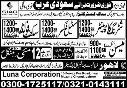 Shuttering Carpenter & Steel Fixer Jobs 2026 In Saudi Arabia announce the Contract career opportunities for the post of See Below Ad in Saudi Arabia for the fresh and experienced candidates on Contract basis who have Check Advertisement degree. Posted date of this post is 30/04/2026 and the last date is 12/05/2026. if you are eligible for this job apply before due date.