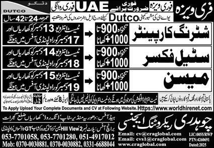 Shuttring Carpanter And Mason Jobs in United Arab Emerities announce the Contract career opportunities for the post of See Below Ad in United Arab Emirates for the fresh and experienced candidates on Contract basis who have Check Advertisement degree. Posted date of this post is 11/12/2025 and the last date is 19/12/2025. if you are eligible for this job apply before due date.