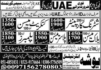 Shuttring Carpanter And Plumbers Jobs in UAE 2025 announce the Contract career opportunities for the post of See Below Ad in United Arab Emirates for the fresh and experienced candidates on Contract basis who have Check Advertisement degree. Posted date of this post is 16/12/2025 and the last date is 26/12/2025. if you are eligible for this job apply before due date.