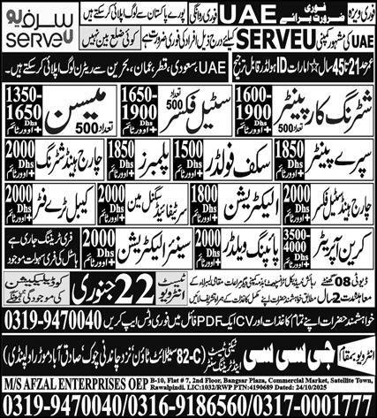 Shuttring Carpanter And Steel Fixer Jobs in Uae 2026 announce the Contract career opportunities for the post of See Below Ad in United Arab Emirates for the fresh and experienced candidates on Contract basis who have Check Advertisement degree. Posted date of this post is 20/01/2026 and the last date is 22/01/2026. if you are eligible for this job apply before due date.