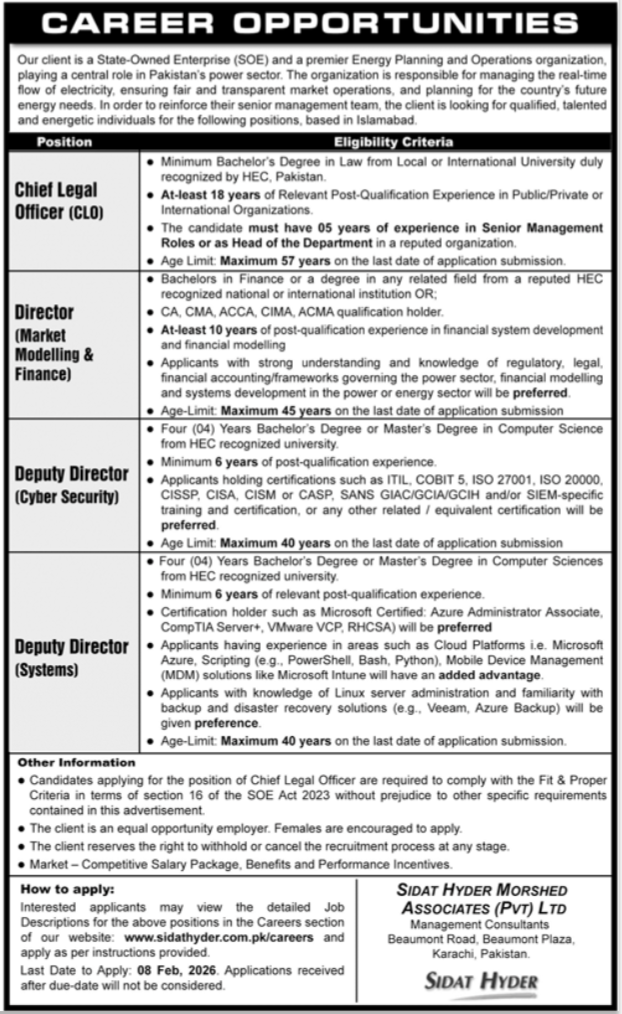 Sidat Hyder Morshed Associates Karachi Jobs 2026 announce the Contract career opportunities for the post of See Below Ad in Sindh, Karachi for the fresh and experienced candidates on Contract basis who have Check Advertisement degree. Posted date of this post is 25/01/2026 and the last date is 08/02/2026. if you are eligible for this job apply before due date.
