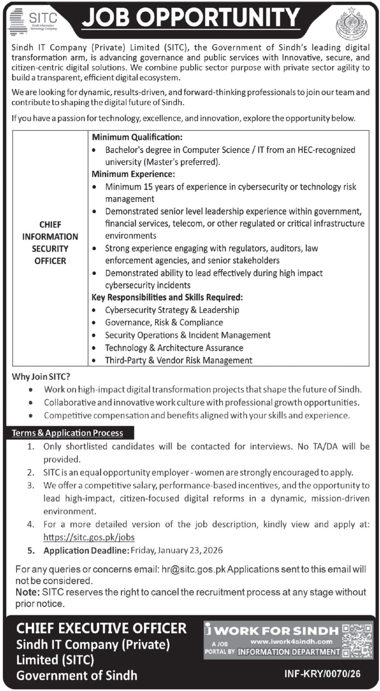 SITC is looking for dynamic, results-driven, and forward-thinking professionals to join the team and contribute to shaping the digital future of Sindh.
