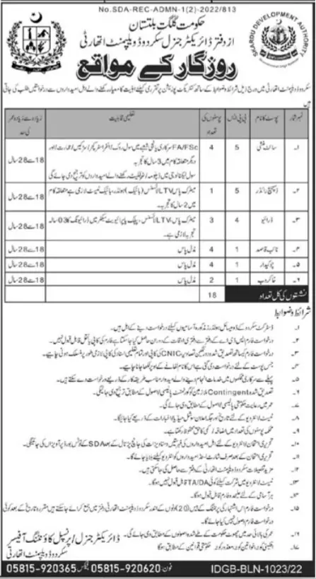 - Skardu Development Authority seeks highly qualified, motivated, and energetic persons for their positions. The Residents of Skardu District are eligible for these positions.