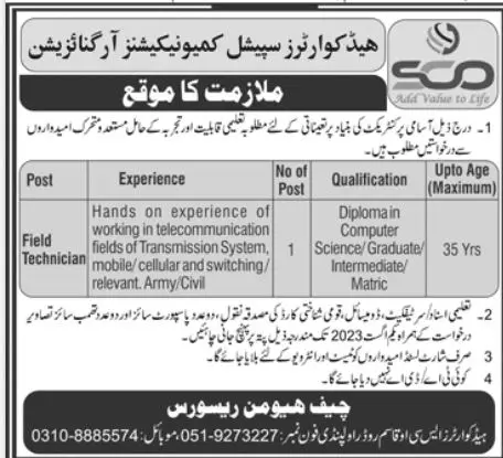 Special Communication Organization Rawalpindi Jobs 2023