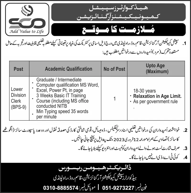 Special Communication Organization Rawalpindi Jobs 2023