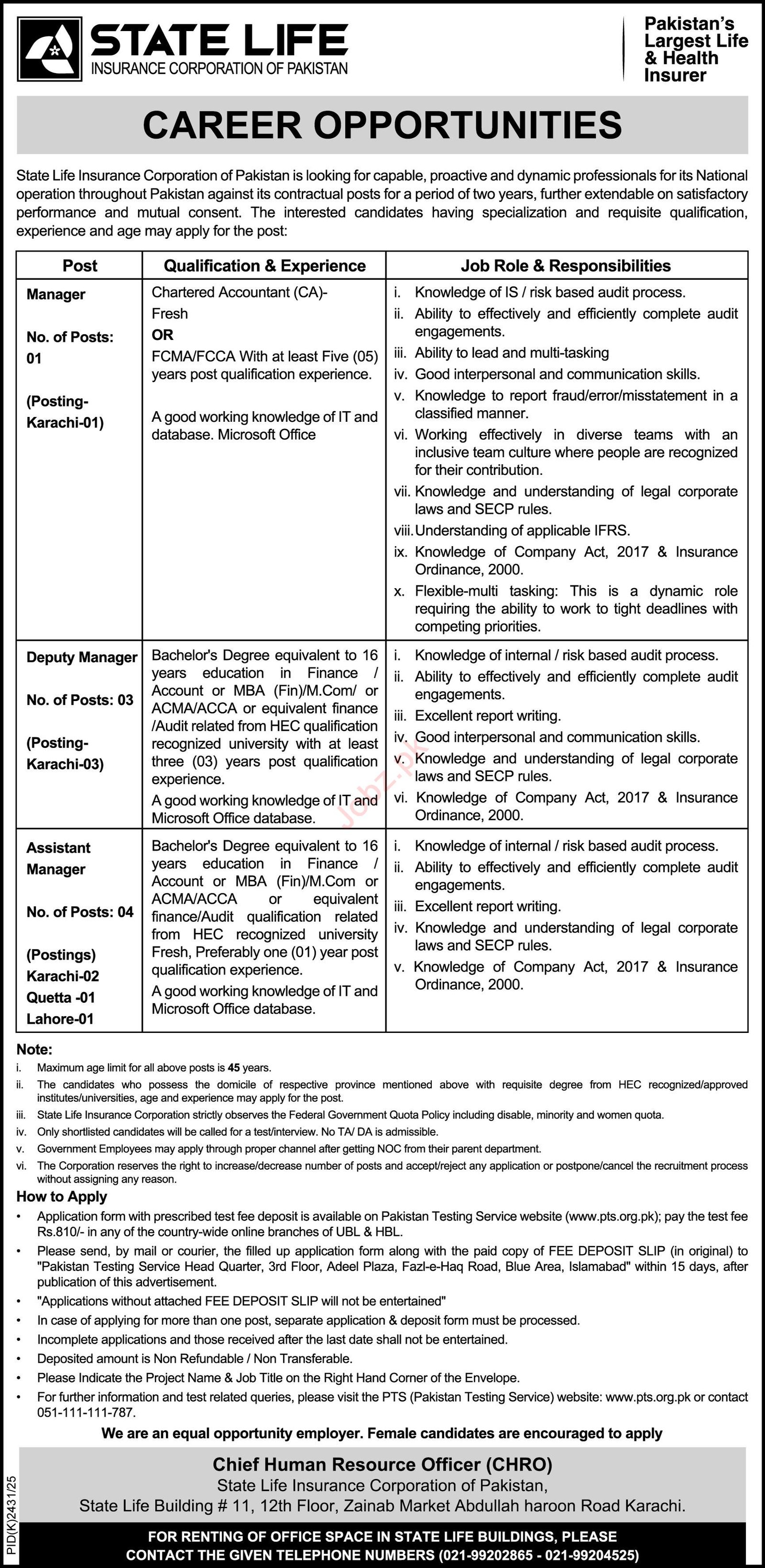 State Life Insurance Corporation Of Pakistan Jobs 2026