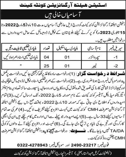 Station Health Organization Quetta Cantt Jobs announce the Contract career opportunities for the post of See Below Ad in Quetta for the fresh and experienced candidates on Contract basis who have Check Advertisement degree. Posted date of this post is 11/02/2022 and the last date is 05/03/2022. if you are eligible for this job apply before due date.