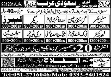 Steel Fixer And Labour Jobs in Saudia Arabia 2025 announce the Contract career opportunities for the post of See Below Ad in Saudi Arabia for the fresh and experienced candidates on Contract basis who have Check Advertisement degree. Posted date of this post is 17/12/2025 and the last date is 20/12/2025. if you are eligible for this job apply before due date.