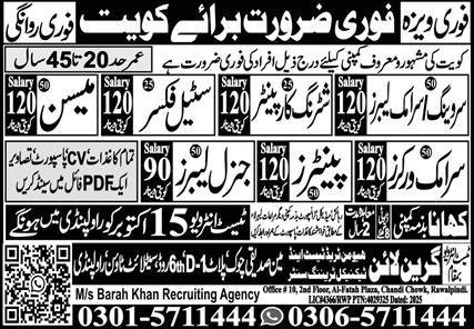 Steel Fixer And Mason Jobs in Kuwait 2025 announce the Contract career opportunities for the post of See Below Ad in Kuwait for the fresh and experienced candidates on Contract basis who have Check Advertisement degree. Posted date of this post is 14/10/2025 and the last date is 15/10/2025. if you are eligible for this job apply before due date.