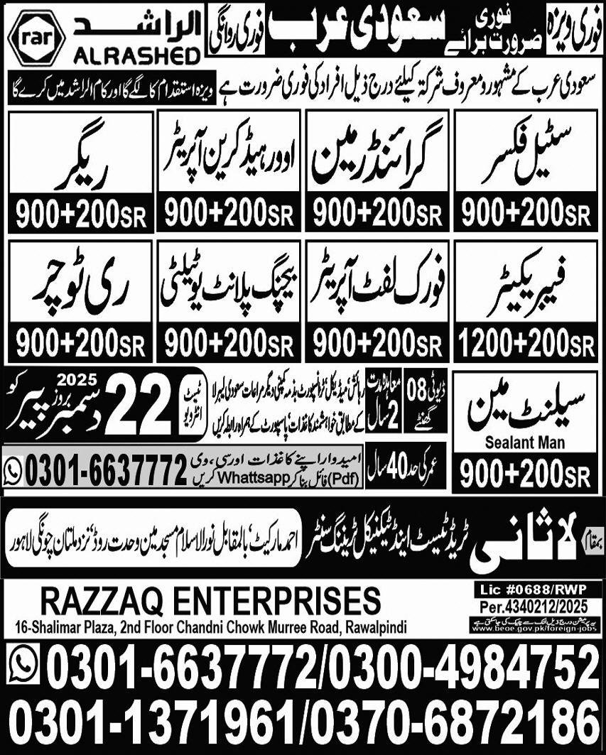 Steel Fixer and Rigger Jobs in Saudia Arabia 2025 announce the Contract career opportunities for the post of See Below Ad in Saudi Arabia for the fresh and experienced candidates on Contract basis who have Check Advertisement degree. Posted date of this post is 20/12/2025 and the last date is 22/12/2025. if you are eligible for this job apply before due date.