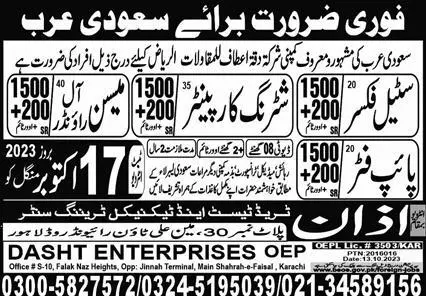 Steel Fixer And Shuttering Carpenter Jobs 2023 In KSA announce the Contract career opportunities for the post of See Below Ad in Saudi Arabia for the fresh and experienced candidates on Contract basis who have Check Advertisement degree. Posted date of this post is 15/10/2023 and the last date is 17/10/2023. if you are eligible for this job apply before due date.