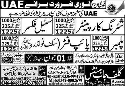 Steel Fixer and Shuttering Carpenter Jobs in UAE 2023 announce the Contract career opportunities for the post of See Below Ad in United Arab Emirates for the fresh and experienced candidates on Contract basis who have Check Advertisement degree. Posted date of this post is 29/05/2023 and the last date is 01/06/2023. if you are eligible for this job apply before due date.