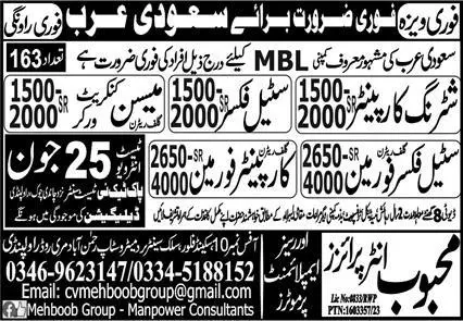 Steel Fixer Foreman & Concrete Worker Jobs 2023 announce the Contract career opportunities for the post of See Below Ad in Saudi Arabia for the fresh and experienced candidates on Contract basis who have Check Advertisement degree. Posted date of this post is 22/06/2023 and the last date is 25/06/2023. if you are eligible for this job apply before due date.