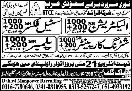 Steel Fixer & Plumber Jobs 2023 In Saudi Arabia announce the Contract career opportunities for the post of See Below Ad in Saudi Arabia for the fresh and experienced candidates on Contract basis who have Check Advertisement degree. Posted date of this post is 20/05/2023 and the last date is 21/05/2023. if you are eligible for this job apply before due date.