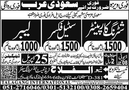 Steel Fixer & Shuttering Carpenter Jobs 2026 In Saudi Arabia announce the Contract career opportunities for the post of See Below Ad in Saudi Arabia for the fresh and experienced candidates on Contract basis who have Check Advertisement degree. Posted date of this post is 21/04/2026 and the last date is 25/04/2026. if you are eligible for this job apply before due date.