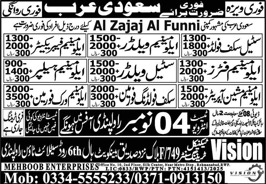 Steel Welder And Elememim Welder Jobs in Saudia Arabia 2025 announce the Contract career opportunities for the post of See Below Ad in Saudi Arabia for the fresh and experienced candidates on Contract basis who have Check Advertisement degree. Posted date of this post is 30/10/2025 and the last date is 04/11/2025. if you are eligible for this job apply before due date.