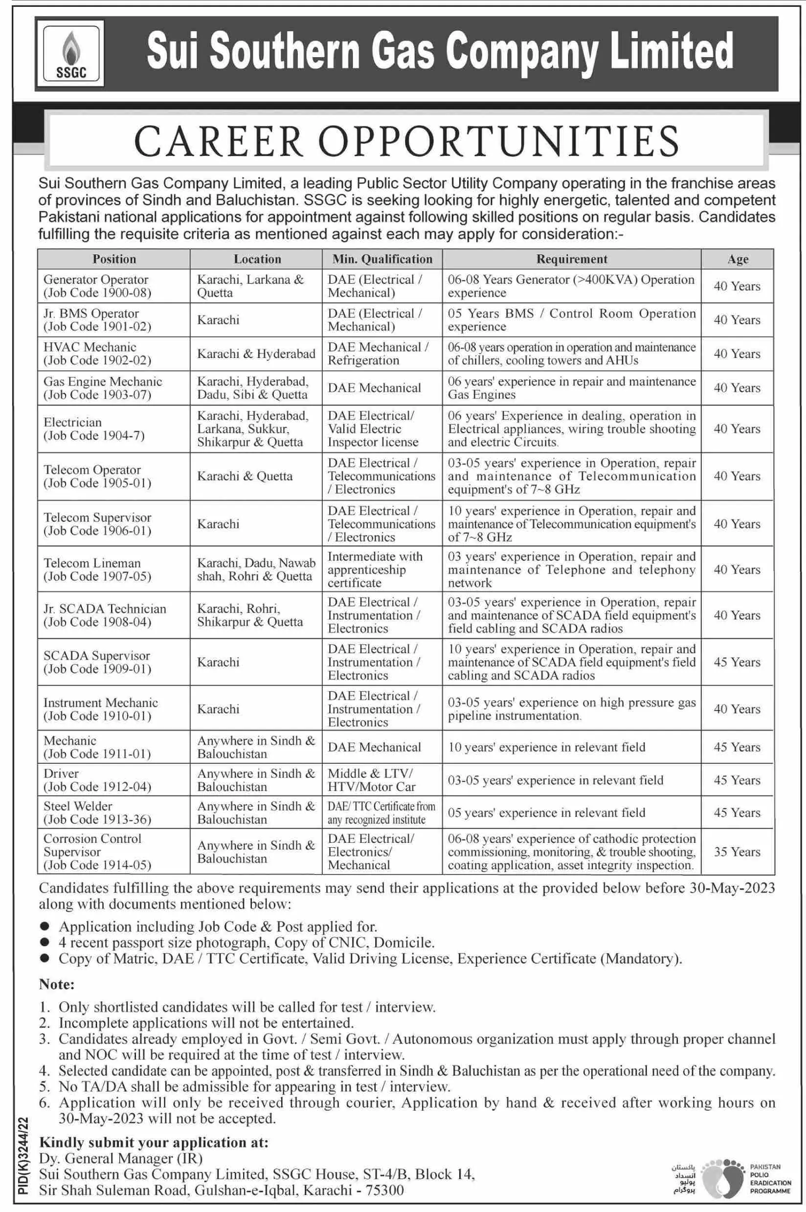 - Candidates can submit applications online at https://www.ssgc.com.pk/careers.