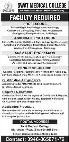 Swat Medical College SMC Jobs 2025 announce the Contract career opportunities for the post of See Below Ad in Khyber Pakhtunkhwa, Swat for the fresh and experienced candidates on Contract basis who have Check Advertisement degree. Posted date of this post is 02/09/2025 and the last date is 17/09/2025. if you are eligible for this job apply before due date.