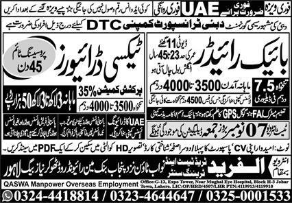 Taxi Driver & Bike Rider Jobs 2025 In UAE announce the Contract career opportunities for the post of See Below Ad in United Arab Emirates for the fresh and experienced candidates on Contract basis who have Check Advertisement degree. Posted date of this post is 06/11/2025 and the last date is 07/11/2025. if you are eligible for this job apply before due date.