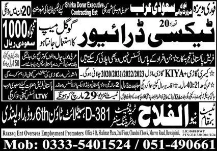Taxi Driver Jobs 2024 In Saudi Arabia announce the Contract career opportunities for the post of See Below Ad in Saudi Arabia for the fresh and experienced candidates on Contract basis who have Check Advertisement degree. Posted date of this post is 17/03/2024 and the last date is 29/03/2024. if you are eligible for this job apply before due date.