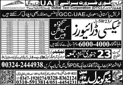 Taxi Driver Jobs in Uae 2026 announce the Contract career opportunities for the post of See Below Ad in United Arab Emirates for the fresh and experienced candidates on Contract basis who have Check Advertisement degree. Posted date of this post is 20/01/2026 and the last date is 23/01/2026. if you are eligible for this job apply before due date.