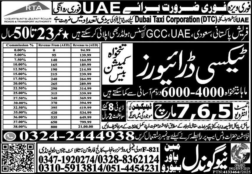 Taxi Driver Jobs Open In UAE 2026 announce the Contract career opportunities for the post of See Below Ad in United Arab Emirates for the fresh and experienced candidates on Contract basis who have Check Advertisement degree. Posted date of this post is 03/03/2026 and the last date is 07/03/2026. if you are eligible for this job apply before due date.