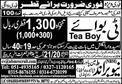 Tea Boy Jobs Open In Qatar 2025 announce the Contract career opportunities for the post of See Below Ad in Qatar for the fresh and experienced candidates on Contract basis who have Check Advertisement degree. Posted date of this post is 19/08/2025 and the last date is 21/08/2025. if you are eligible for this job apply before due date.