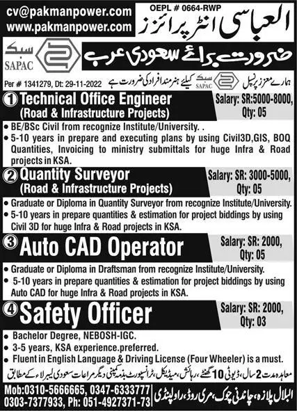 Technical Office Engineer & Auto CAD Operator Jobs 2023 announce the Contract career opportunities for the post of See Below Ad in Saudi Arabia for the fresh and experienced candidates on Contract basis who have Check Advertisement degree. Posted date of this post is 14/06/2023 and the last date is 21/06/2023. if you are eligible for this job apply before due date.
