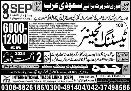 Testing Engineer Jobs In Saudi Arabia announce the Contract career opportunities for the post of See Below Ad in Saudi Arabia for the fresh and experienced candidates on Contract basis who have Check Advertisement degree. Posted date of this post is 28/07/2024 and the last date is 02/08/2024. if you are eligible for this job apply before due date.