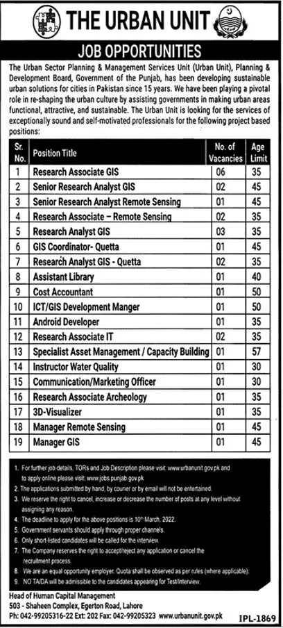 The URBEN UNIT PUNJAB JOBS announce the Contract career opportunities for the post of See Below Ad in Punjab for the fresh and experienced candidates on Contract basis who have Check Advertisement degree. Posted date of this post is 20/02/2022 and the last date is 10/03/2022. if you are eligible for this job apply before due date.