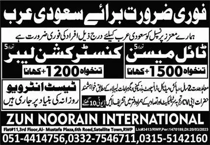 Tile Mason & Construction Labor Jobs 2023 In Saudi Arabia announce the Contract career opportunities for the post of See Below Ad in Saudi Arabia for the fresh and experienced candidates on Contract basis who have Check Advertisement degree. Posted date of this post is 21/06/2023 and the last date is 28/06/2023. if you are eligible for this job apply before due date.
