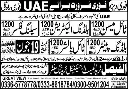 Tile Polisher & Building Electrician Jobs 2023 In UAE announce the Contract career opportunities for the post of See Below Ad in United Arab Emirates for the fresh and experienced candidates on Contract basis who have Check Advertisement degree. Posted date of this post is 16/06/2023 and the last date is 19/06/2023. if you are eligible for this job apply before due date.