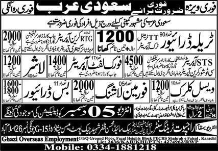 Traila Driver And Bus Driver Jobs in Saudia Arabia 2025 announce the Contract career opportunities for the post of See Below Ad in Saudi Arabia for the fresh and experienced candidates on Contract basis who have Check Advertisement degree. Posted date of this post is 03/12/2025 and the last date is 05/12/2025. if you are eligible for this job apply before due date.