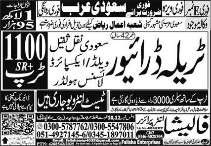 Traila Driver & HTV Driver Jobs 2025 In Saudi Arabia announce the Contract career opportunities for the post of See Below Ad in Saudi Arabia for the fresh and experienced candidates on Contract basis who have Check Advertisement degree. Posted date of this post is 05/12/2025 and the last date is 12/12/2025. if you are eligible for this job apply before due date.