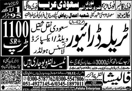 Traila Driver Jobs In Saudi Arabia 2025 announce the Contract career opportunities for the post of See Below Ad in Saudi Arabia for the fresh and experienced candidates on Contract basis who have Check Advertisement degree. Posted date of this post is 07/12/2025 and the last date is 14/12/2025. if you are eligible for this job apply before due date.