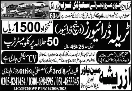 Traila Driver & Wench Driver Jobs 2023 In Saudi Arabia announce the Contract career opportunities for the post of See Below Ad in Saudi Arabia for the fresh and experienced candidates on Contract basis who have Check Advertisement degree. Posted date of this post is 02/08/2023 and the last date is 09/08/2023. if you are eligible for this job apply before due date.
