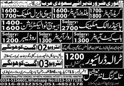 Tralla Driver Jobs In Saudi Arabia 2023 announce the Contract career opportunities for the post of See Below Ad in Saudi Arabia for the fresh and experienced candidates on Contract basis who have Check Advertisement degree. Posted date of this post is 29/07/2023 and the last date is 03/08/2023. if you are eligible for this job apply before due date.