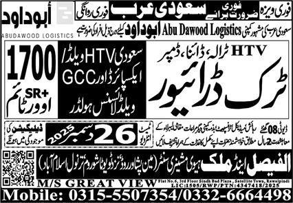 Truck Driver Jobs in Saudia Arabia 2025 announce the Contract career opportunities for the post of See Below Ad in Saudi Arabia for the fresh and experienced candidates on Contract basis who have Check Advertisement degree. Posted date of this post is 25/12/2025 and the last date is 26/12/2025. if you are eligible for this job apply before due date.