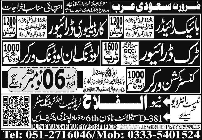 Truck Driver & Loading Unloading Worker Jobs In KSA announce the Contract career opportunities for the post of See Below Ad in Saudi Arabia for the fresh and experienced candidates on Contract basis who have Check Advertisement degree. Posted date of this post is 03/11/2024 and the last date is 06/11/2024. if you are eligible for this job apply before due date.
