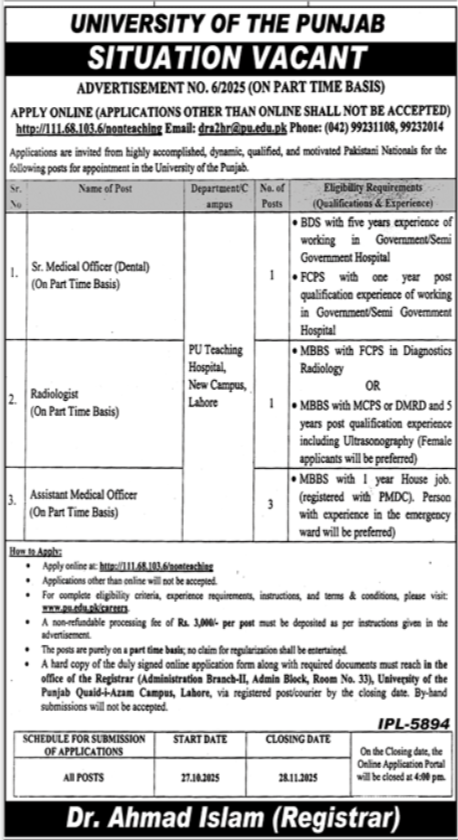 University Of Punjab UOP Lahore Jobs 2025 announce the Contract career opportunities for the post of See Below Ad in Punjab, Lahore for the fresh and experienced candidates on Contract basis who have Check Advertisement degree. Posted date of this post is 05/11/2025 and the last date is 20/11/2025. if you are eligible for this job apply before due date.